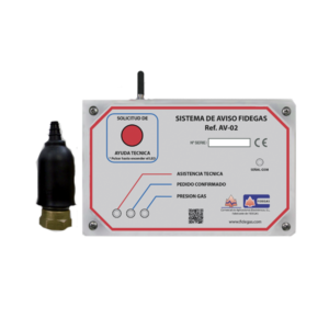 Dispositivo que gestiona las necesidades de la instalación de gas mediante mensajes SMS o en una aplicación mediante conexión GPRS. Un presostato controla la presión en la instalación realizando la Solicitud de Gas cuando sea necesario. Un pulsador permite Solicitar asistencia técnica al teléfono configurado.